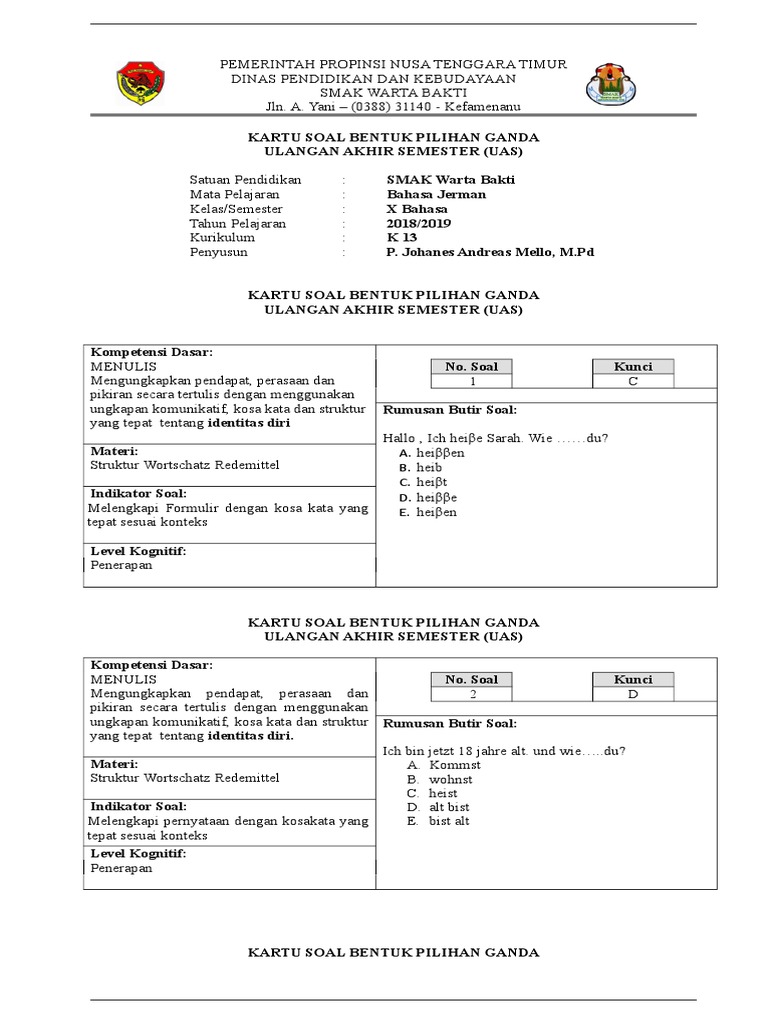 Soal Uas Bahasa Jerman Kelas X Semester2 K13 2021 Himpunan Soal from tse1.mm.bing.net We did not find results for: Maybe you would like to learn more about one of these? Materi bahasa jerman kelas 10. Check spelling or type a new query.